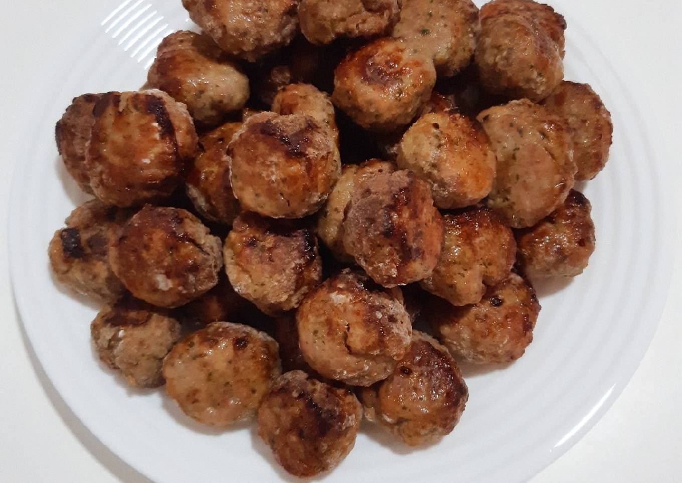 - Agregar el picado a la carne, dar forma a las albóndigas, pasarlas por harina. Colocarlas en la bandeja del horno, y pulverizar aceite.