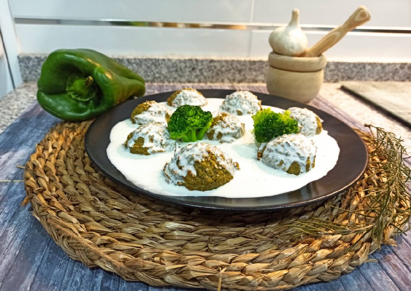 Alb贸ndigas de br贸coli 馃ウ y avena con salsa de k茅fir y queso azul