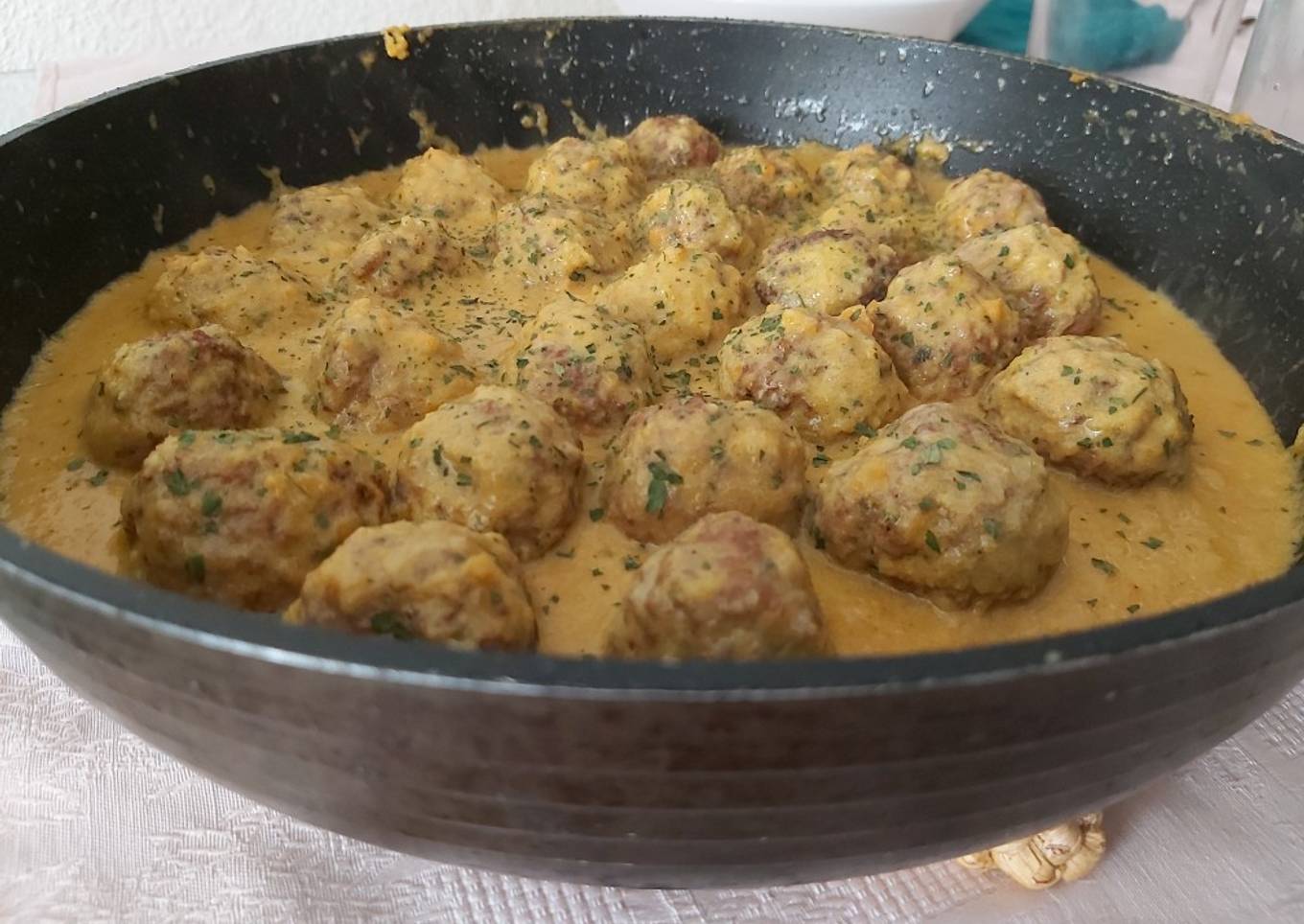 - Mezclar la carne con el resto de ingredientes para las albóndigas, bolear y freír hasta que doren (tienen que quedar ligeramente crudas, se terminarán de hacer con la salsa).