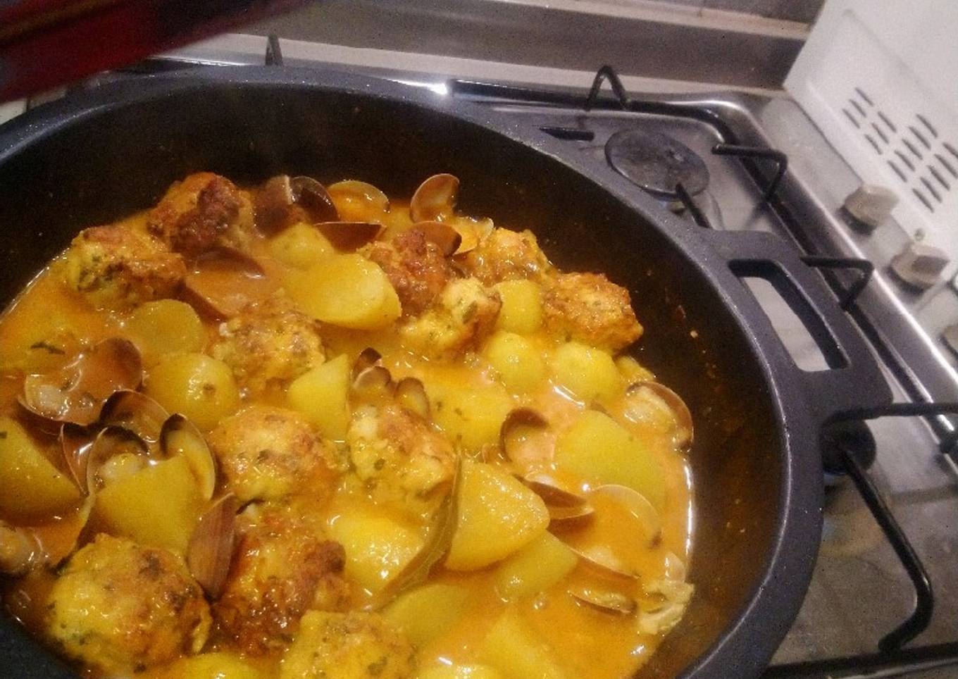 Steps to make to make Patatas guisadas con albóndigas de bacalao