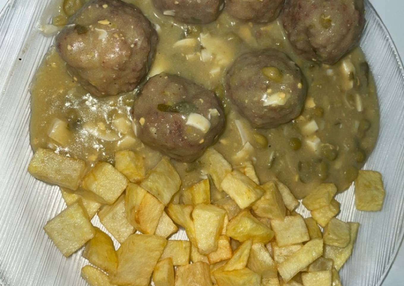 Steps to make to make Albóndigas en salsa verde con patatas a cuadros