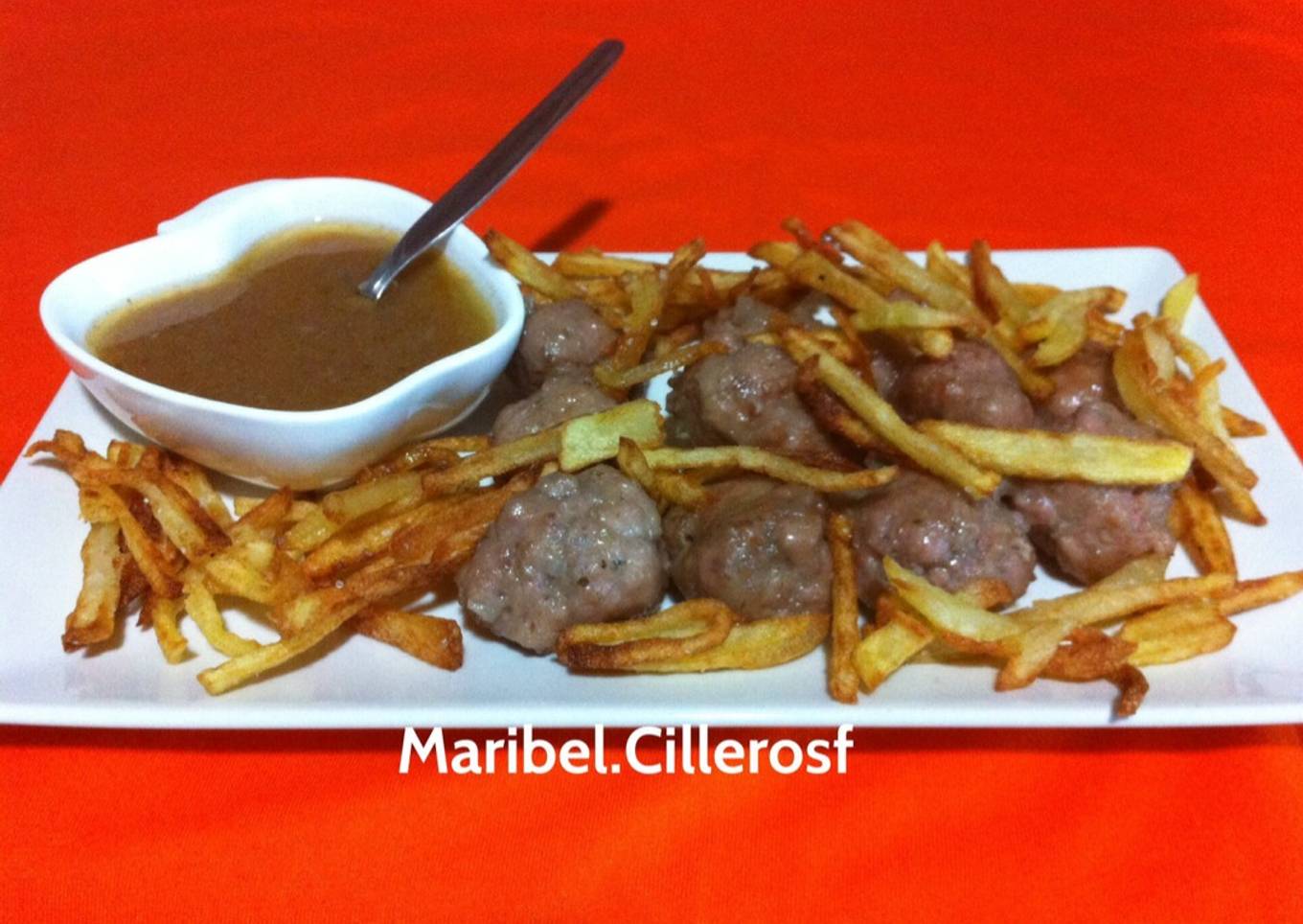 Albóndigas con patatas fritas, tipo paja is one of the most well liked of current trending foods in the world. It's easy, it's fast, it tastes yummy. It's enjoyed by millions daily. They're fine and they look wonderful. Albóndigas con patatas fritas, tipo paja is something which I've loved my entire life.