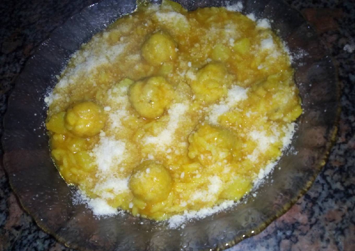 Guiso de arroz con alb贸ndigitas de pollo 馃悿